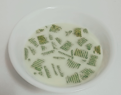 시간이 지남에 따라 우유가 녹색으로 변하는 것을 볼 수 있어요.