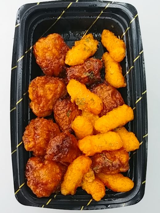 고추치킨, 어묵튀김, 떡튀김이 아주 가득 들어있습니다.