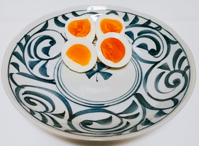 간이 되어 있는 삶은 달걀인데 퍽퍽하지 않고 부드러워요. 보통 삶은 달걀 2개를 연속으로 먹으면 퍽퍽하잖아요.