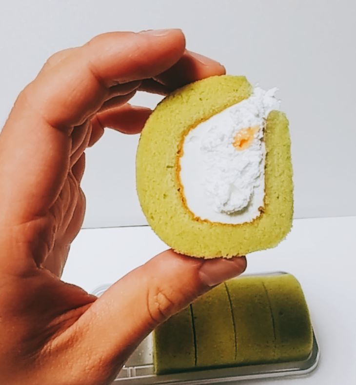 롤 시트 안쪽은 모찌롤의 특징인 메론 생크림이 가득 들어 있습니다.