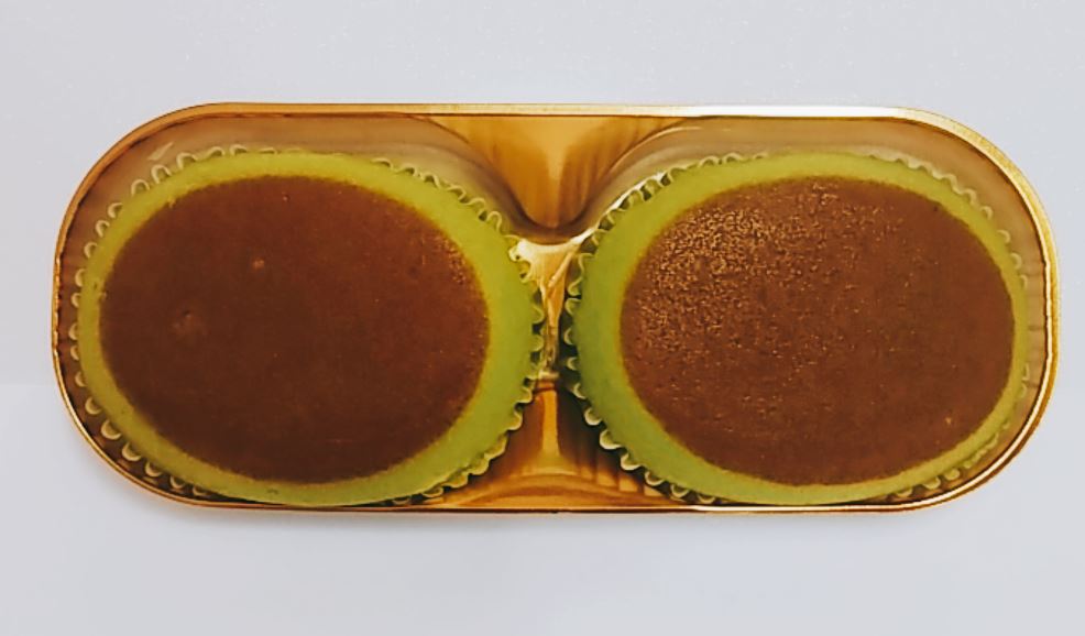 포장지를 열어보면 제주녹차치즈케익 두 덩이가 들어있습니다.