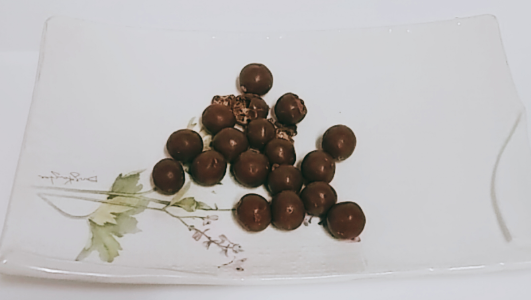 초콜릿 한 봉지를 접시에 담아봤습니다.