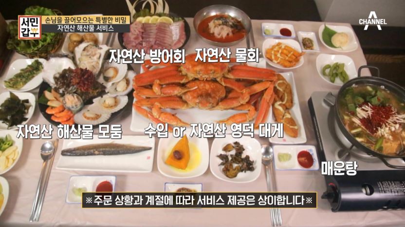 신선한 자연산 해산물이 서민갑부 성공의 비결이라고 생각합니다.