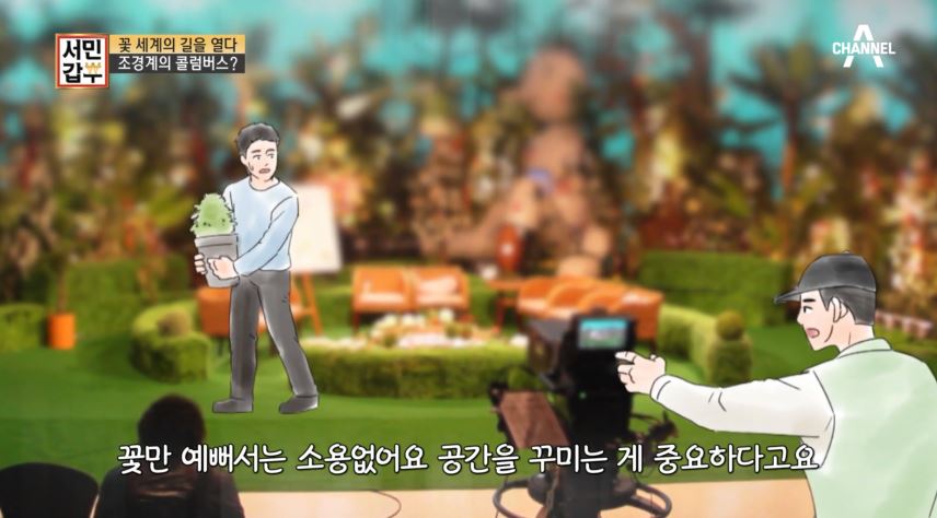방송사 무대 조경 경험을 통해 갑부는 공간을 꾸미는 법을 배우게 됩니다.