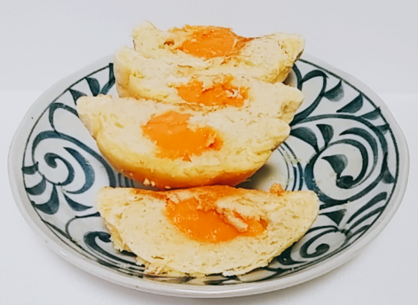 내용물을 보면 소보루 빵처럼 생겼어요. 사진을 찾아보니 잘 익은 멜론 색깔이네요.